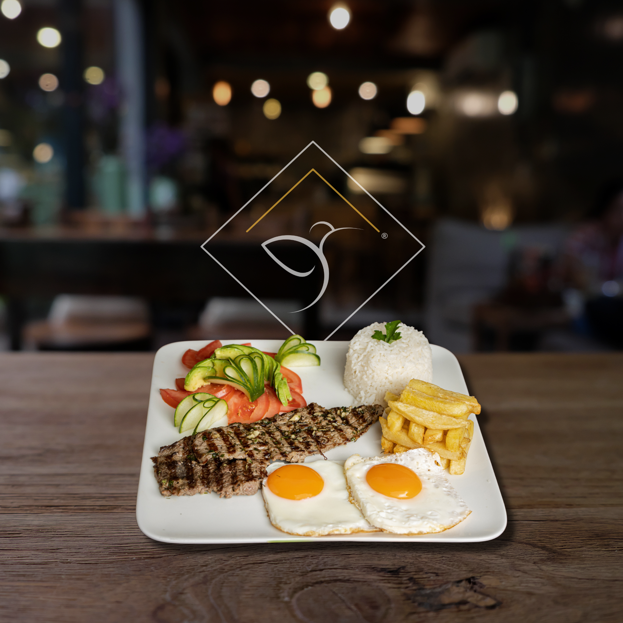 Acompañado de papas fritas, huevos fritos, arroz, ensalada |Bebida