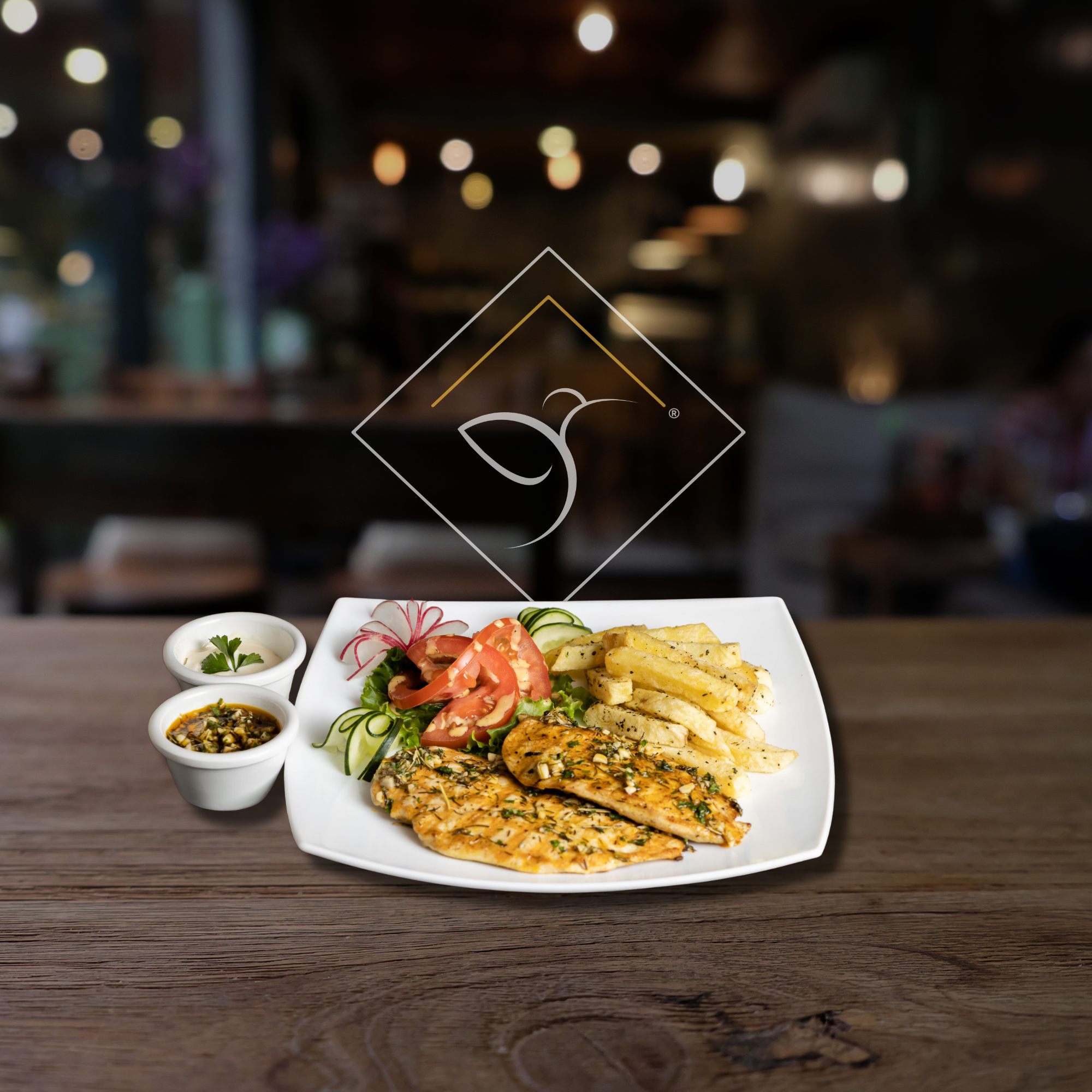 Acompañada de papas fritas, salsas de casa, ensalada |Bebida.