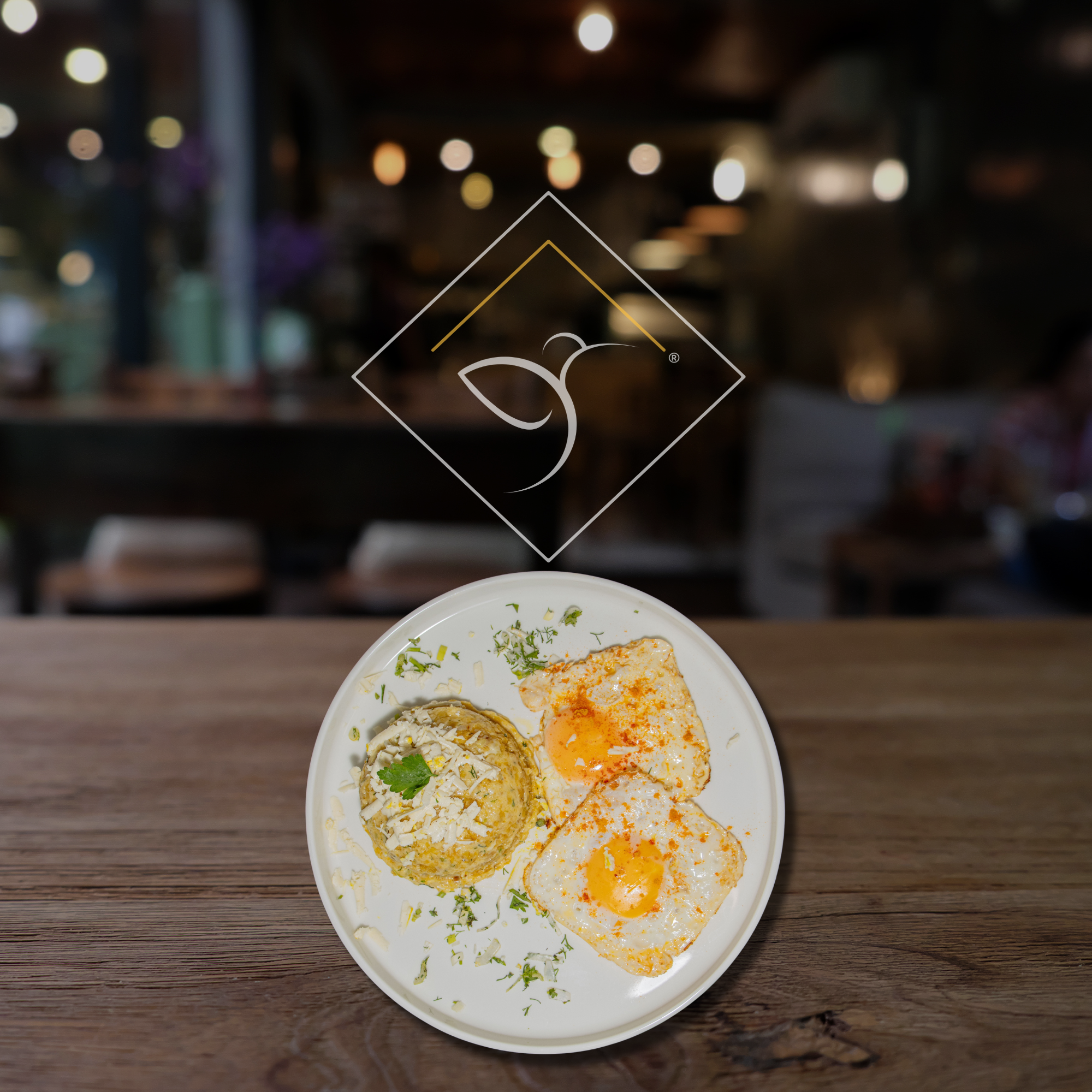 Acompañado de huevos fritos, café americano |Vaso de jugo natural